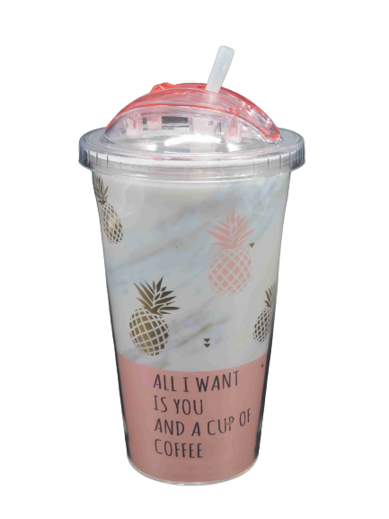 (N)כוס שתיה מעוצבת אננס עם פיה נשלפת Ref : 5147-1
