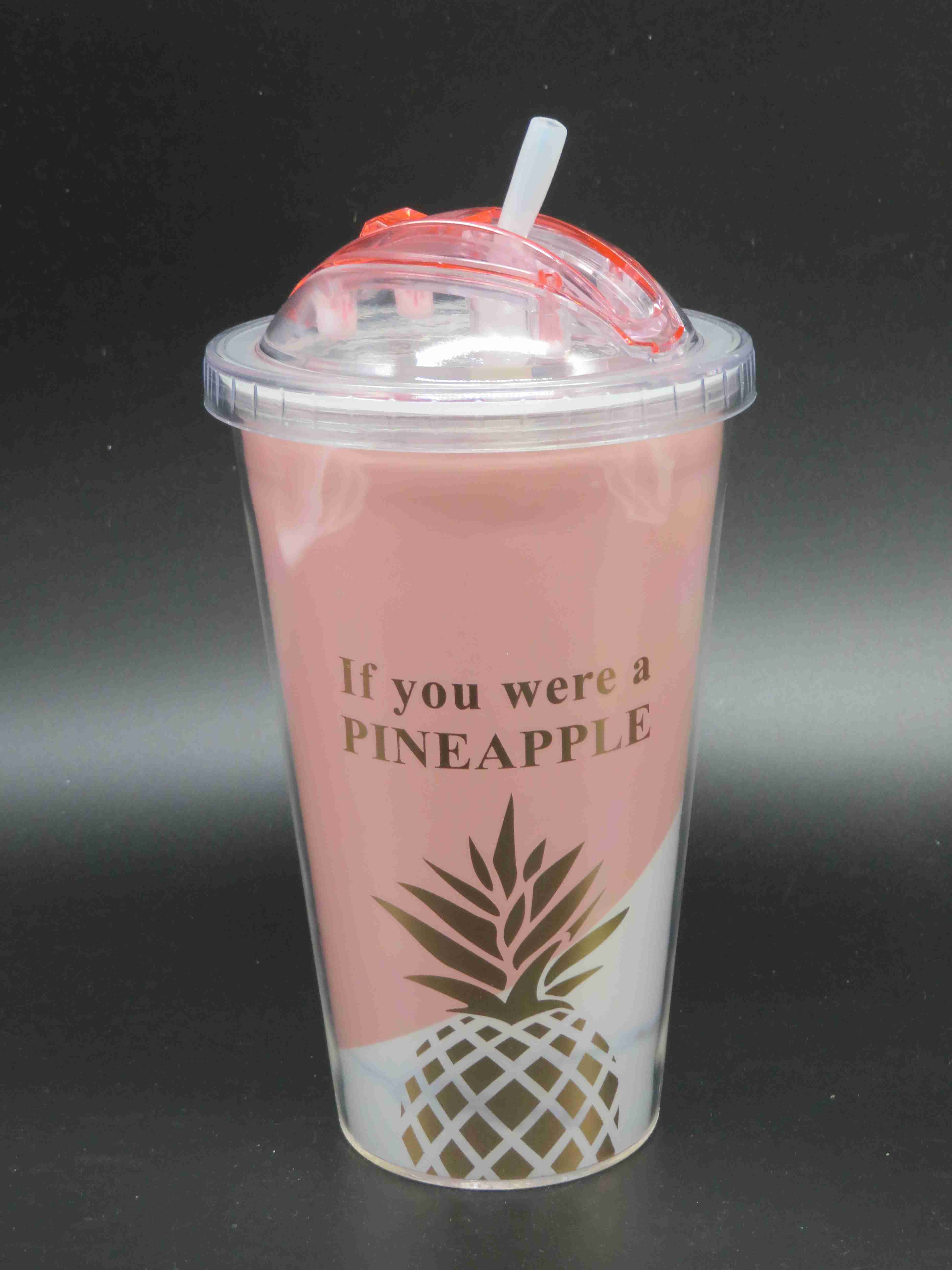 (N)כוס שתיה מעוצבת אננס עם פיה נשלפת Ref : 5147-3