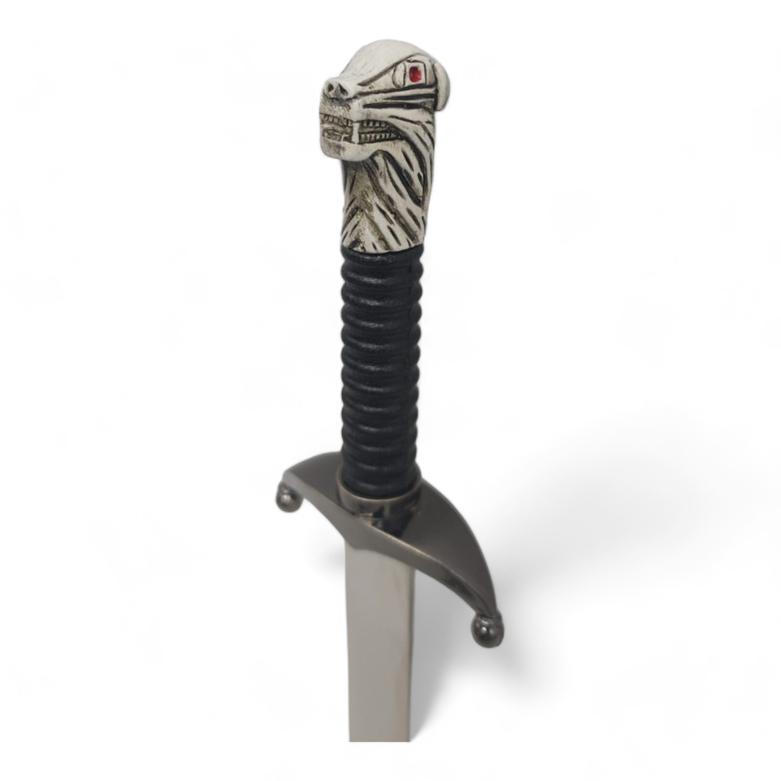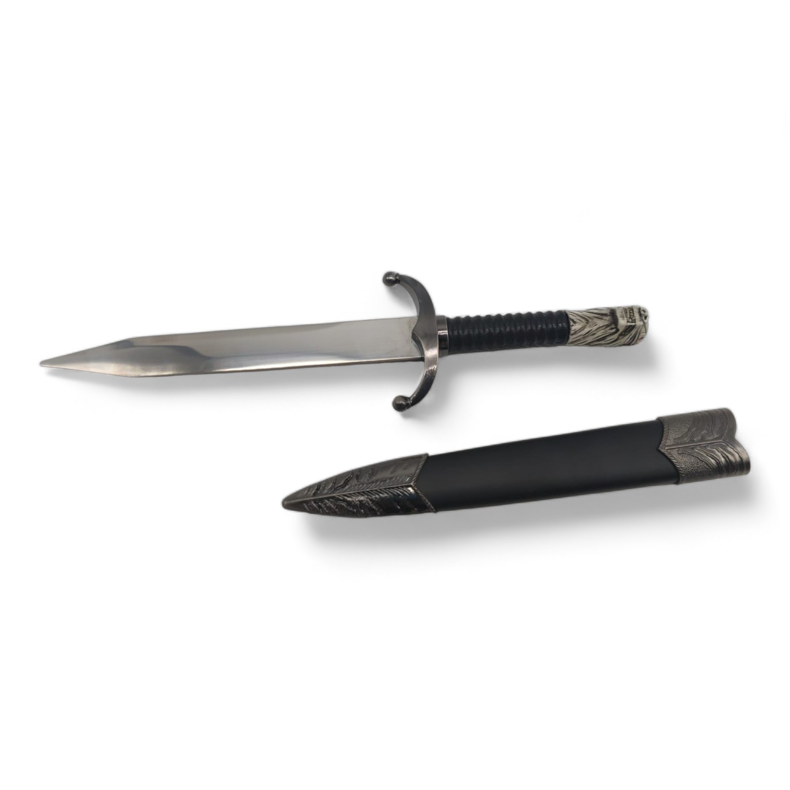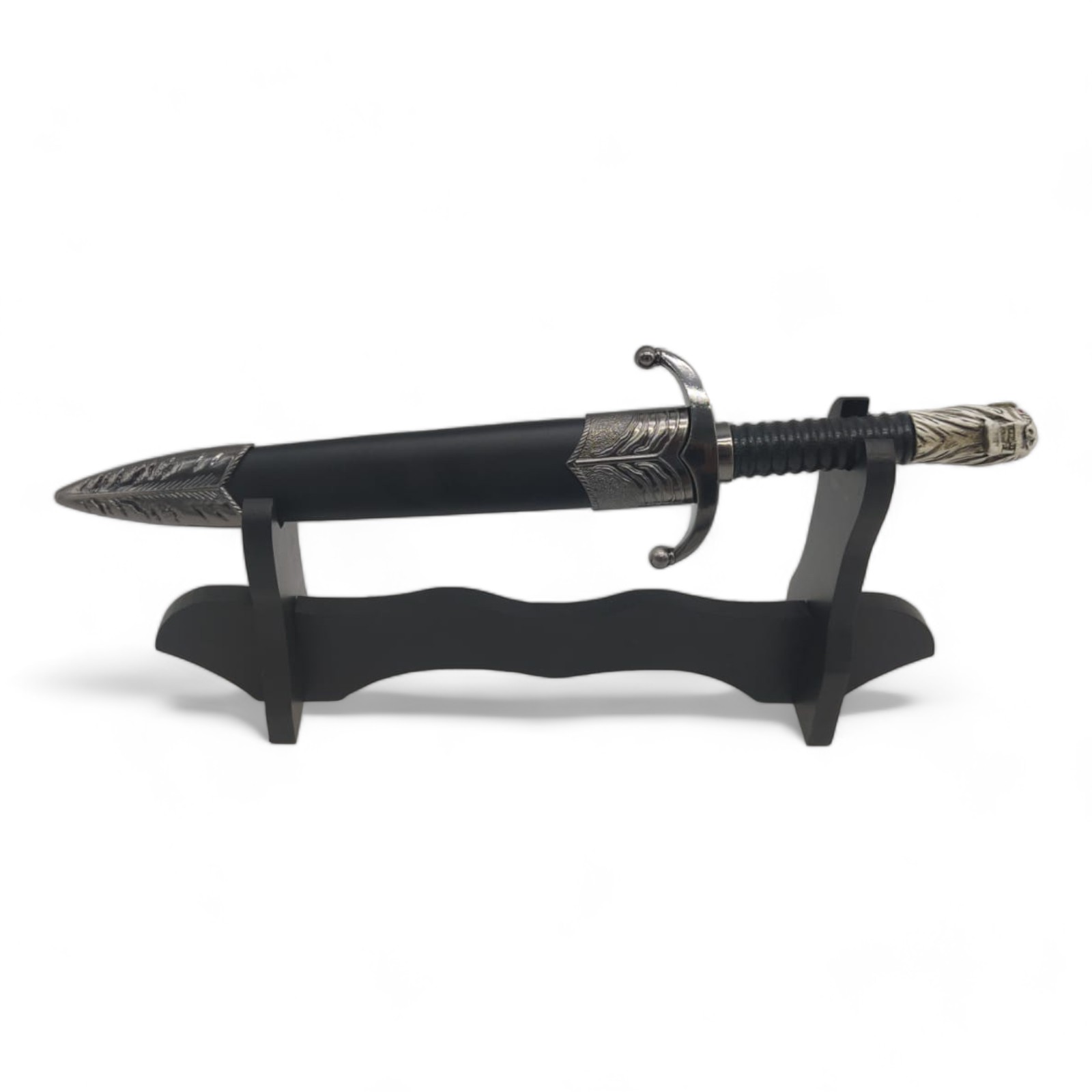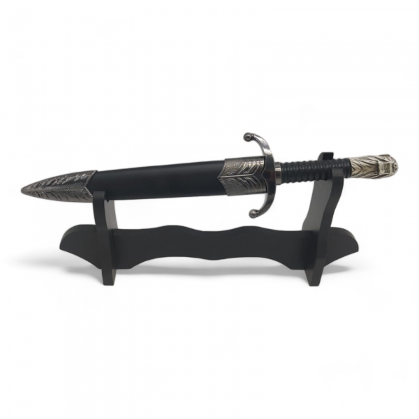 סכין מתכת עם ידית מעוטרת על מעמד עץ Ref : 1408