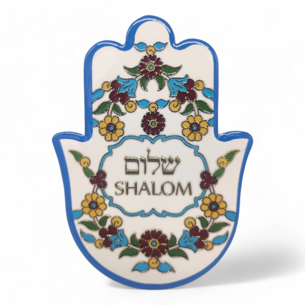 (N)חמסה קרמיקה זהב לשולחן ולקיר - שלום עם פרחים Ref : 1485-3