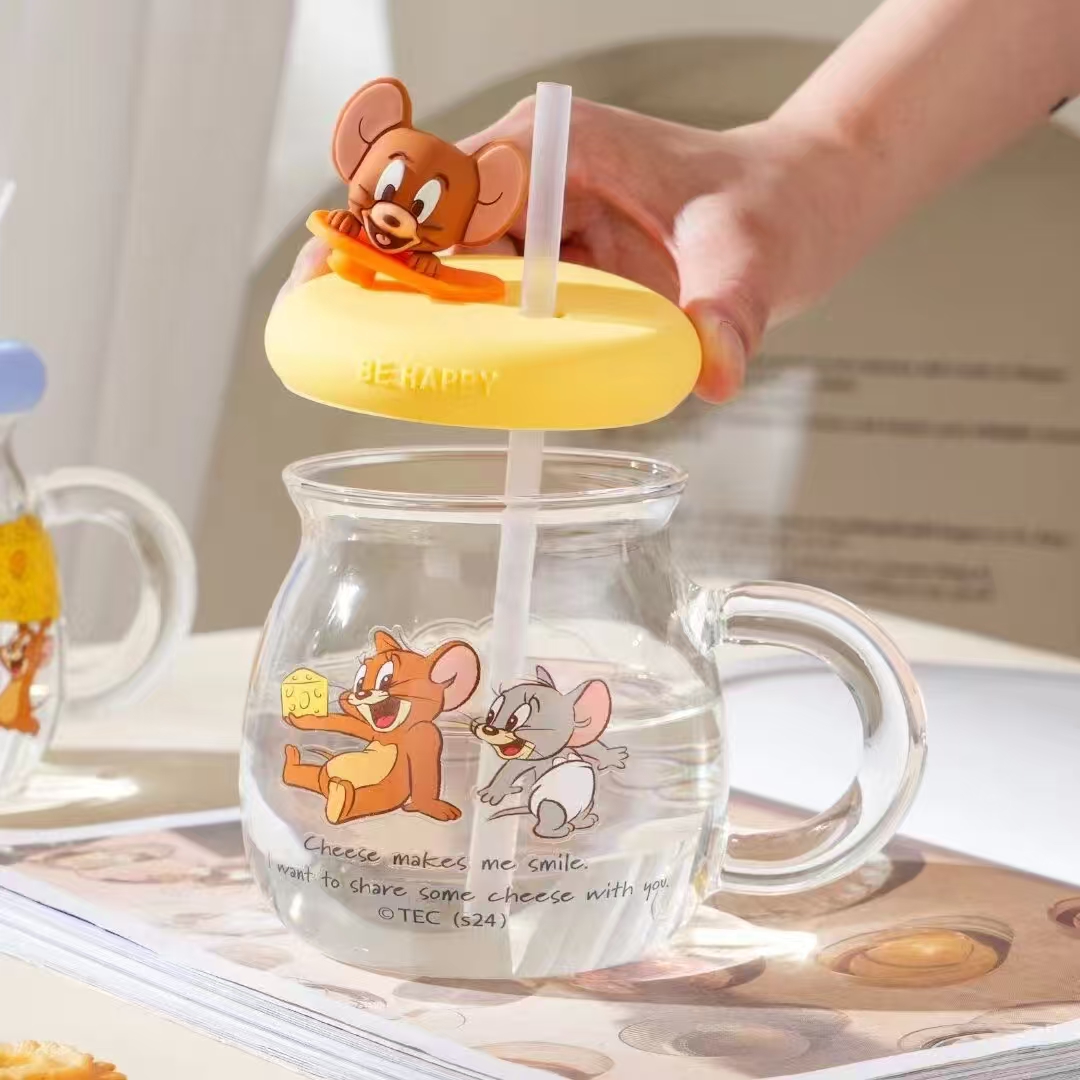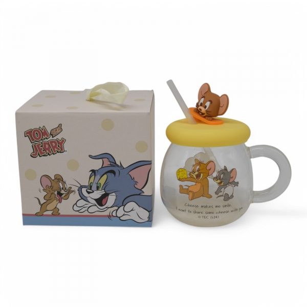 כוס זכוכית טום וג'רי עם מכסה ודמות מסיליקון - ג'רי Ref : 7957-2