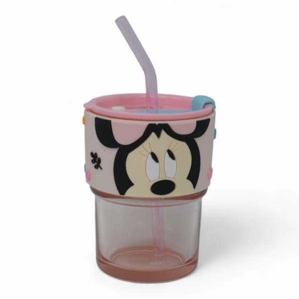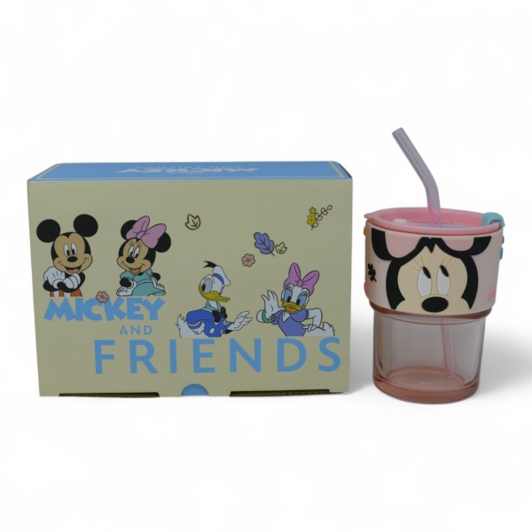 כוס זכוכית דיסני עם חבק סיליקון מכסה וקש באריזת מתנה - מיני Ref : 7953-2